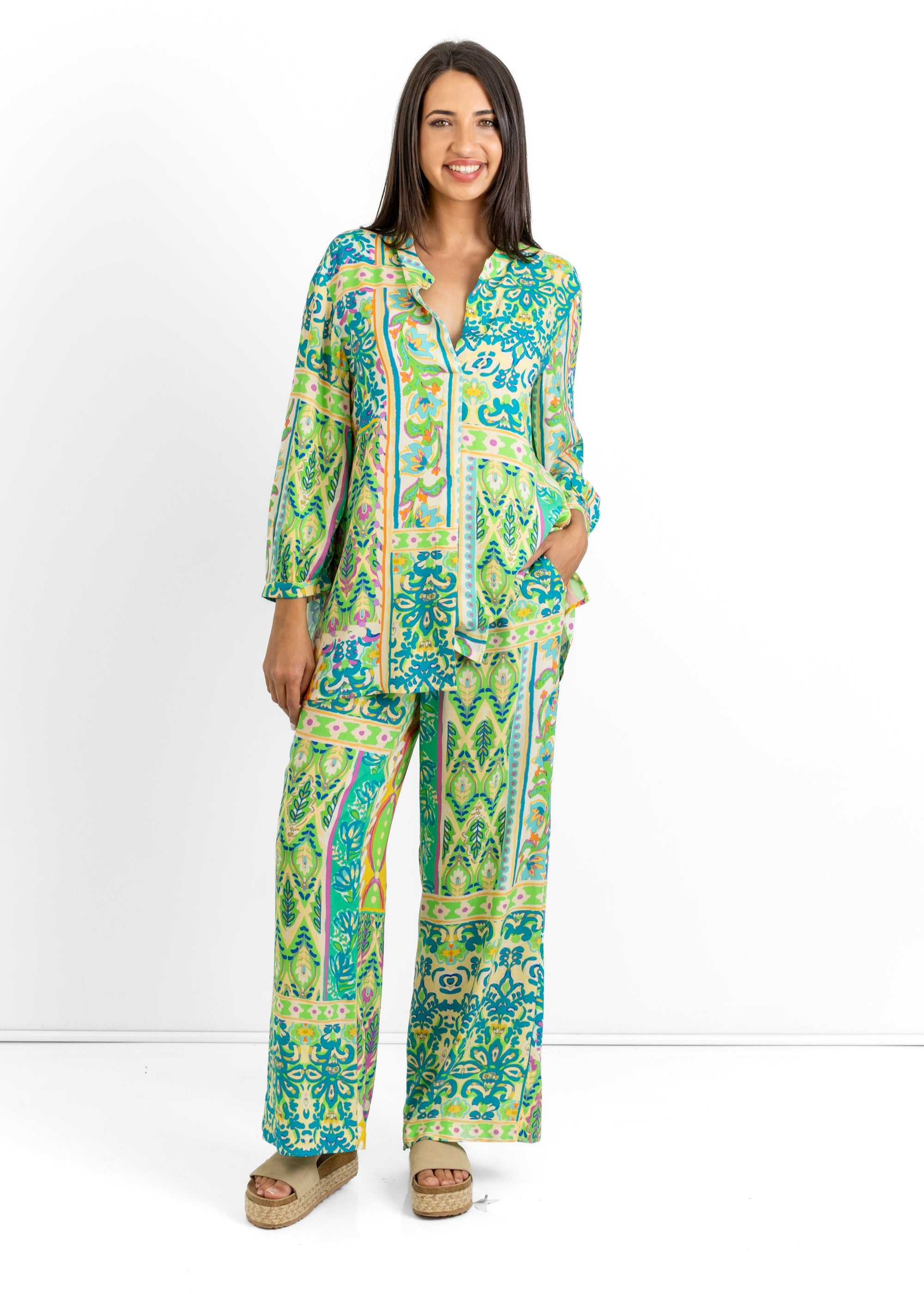 River Mandarin Loose Fit Shirt in Ink Impressions
