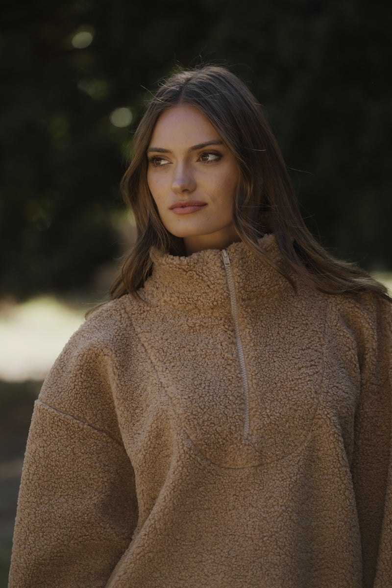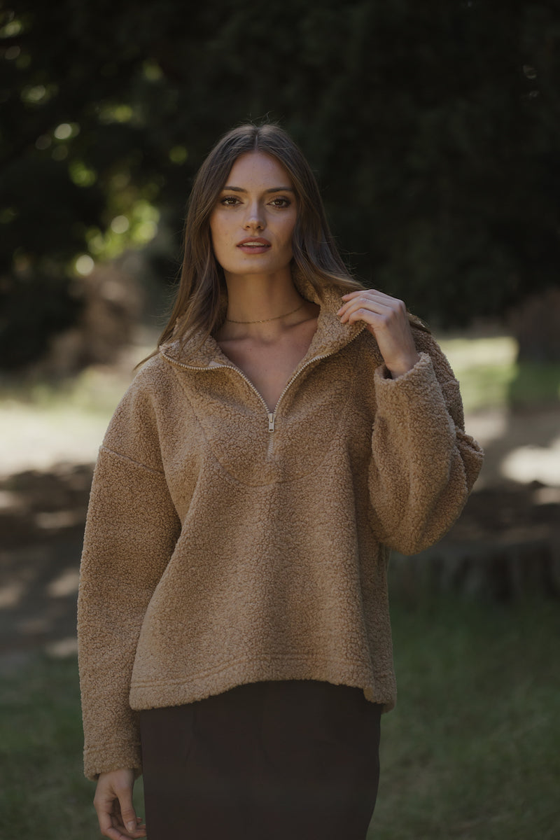 The Half Zip Borg Pullover from Lila Rose is perfect for lazy weekends or casual outings. Made with cosy borg fabric, this pullover features a funnel neck design and zip closure for adjustable coverage. Stay stylish and snug in this versatile piece.